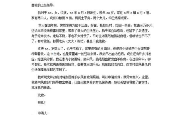 农村的低保补助有效缓解了这些家庭的生活压力问题,使得他们的生活有了基本保障,以上小编已经告诉你该如何写低保申请书,如果你的家庭符合条件,一定要记得领取这份补助金哦。